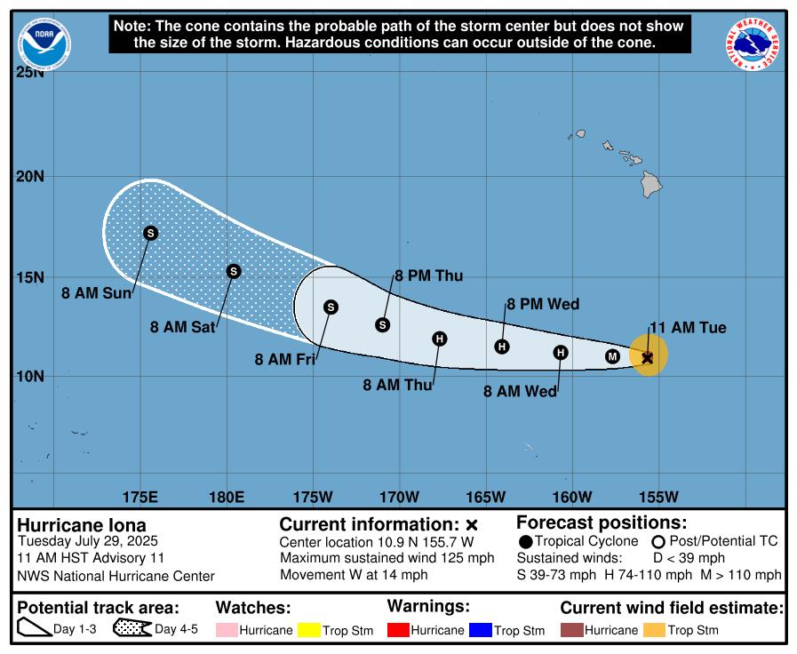 Major Hurricane Iona continues to strengthen south of Hawaii with