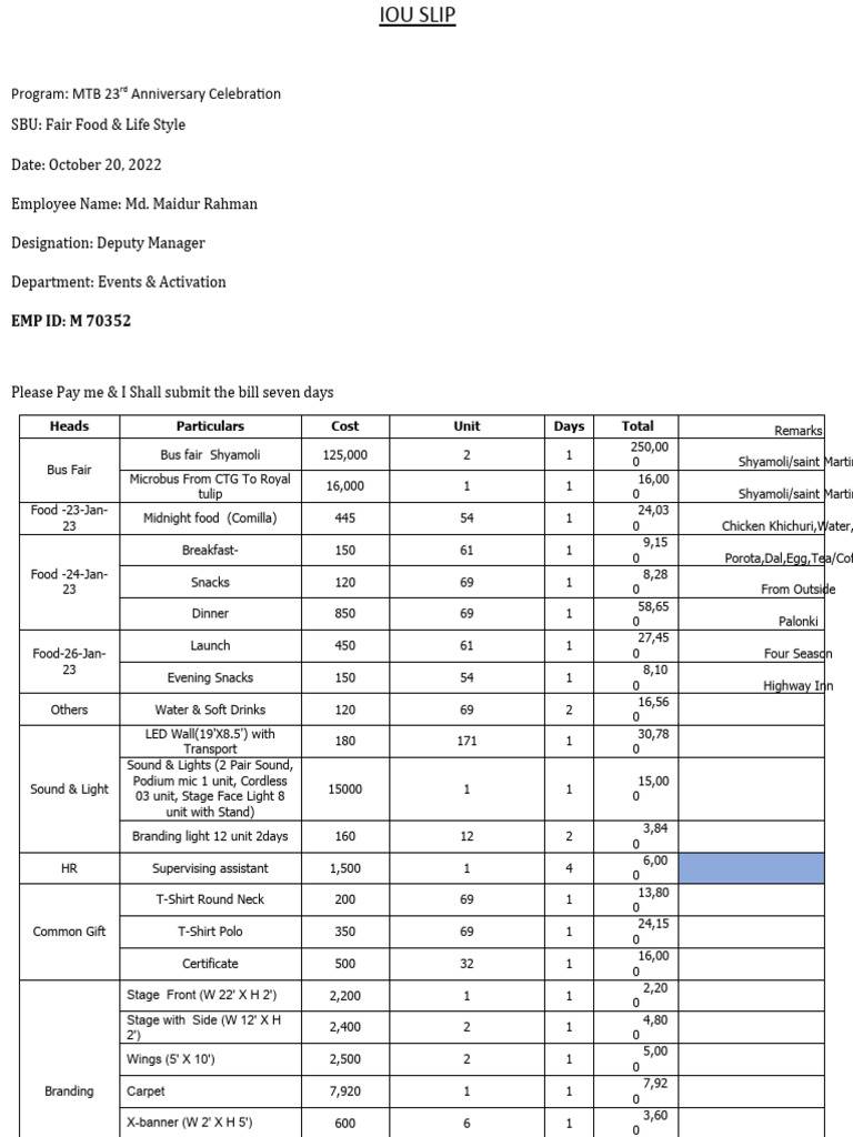 Iou Slip PDF Cuisine Foods