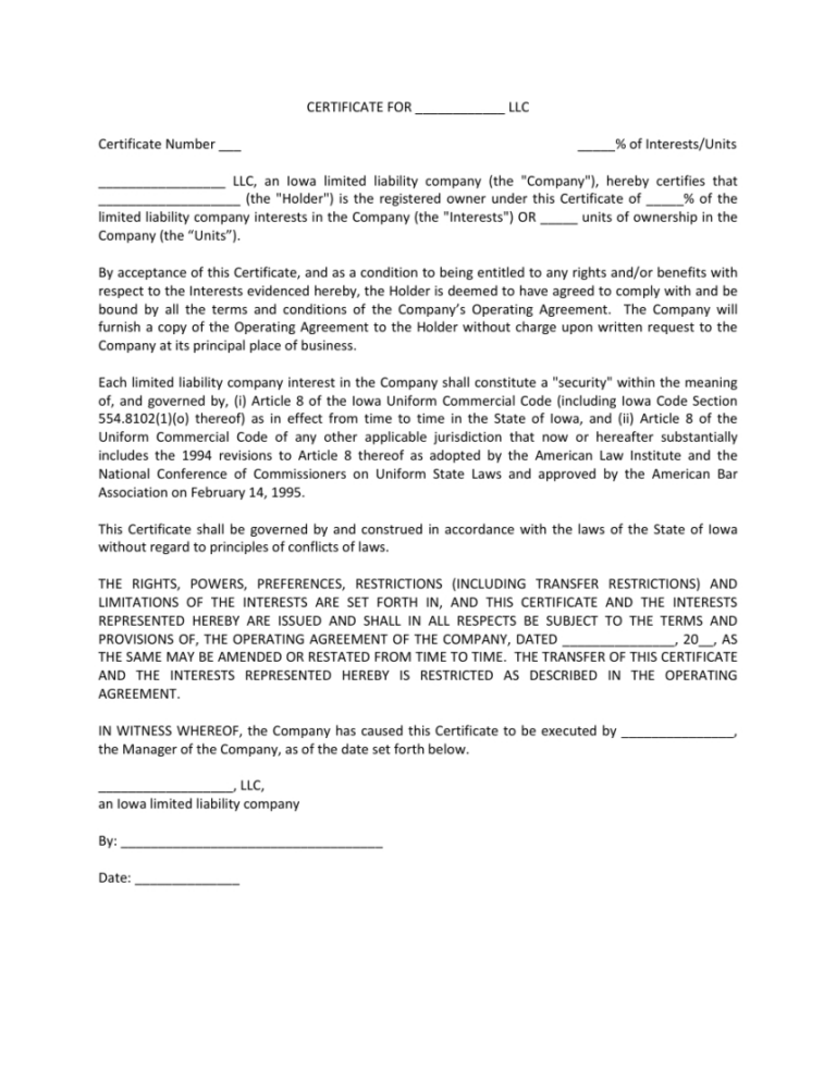 Sample Certificate Of Organization Iowa How To Transfer LLC Ownership