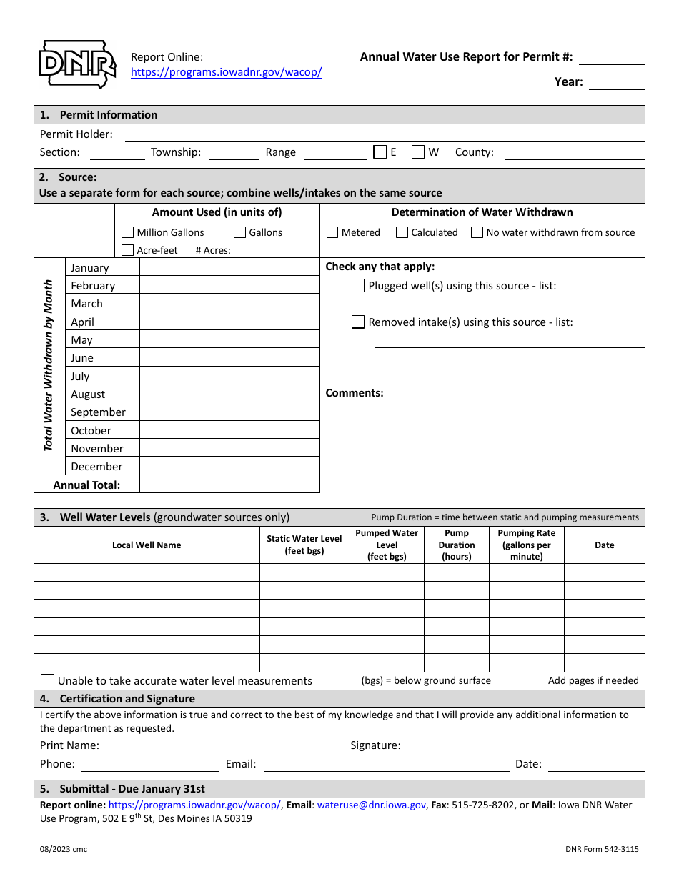DNR Form 542 3115 Download Fillable PDF or Fill Online Annual Water Use