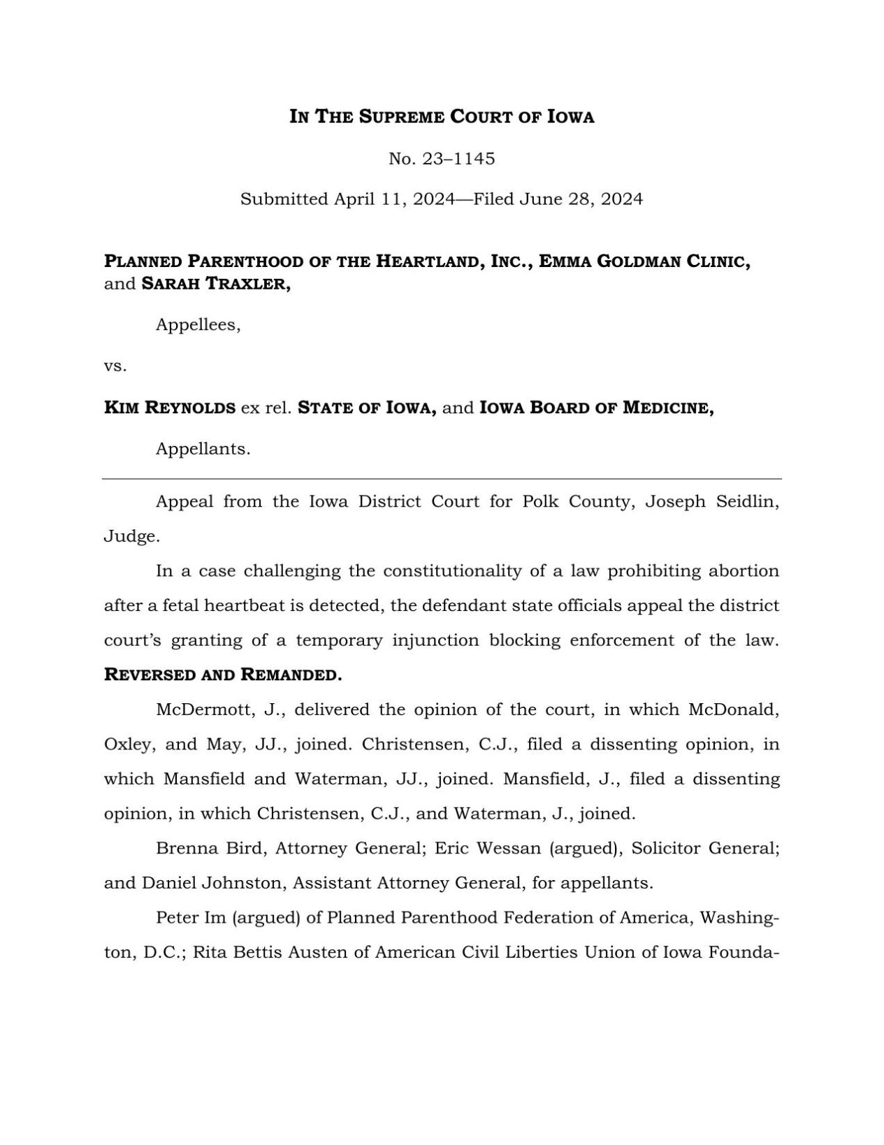 Iowa Supreme Court dissenting opinion on abortion law weareiowa com