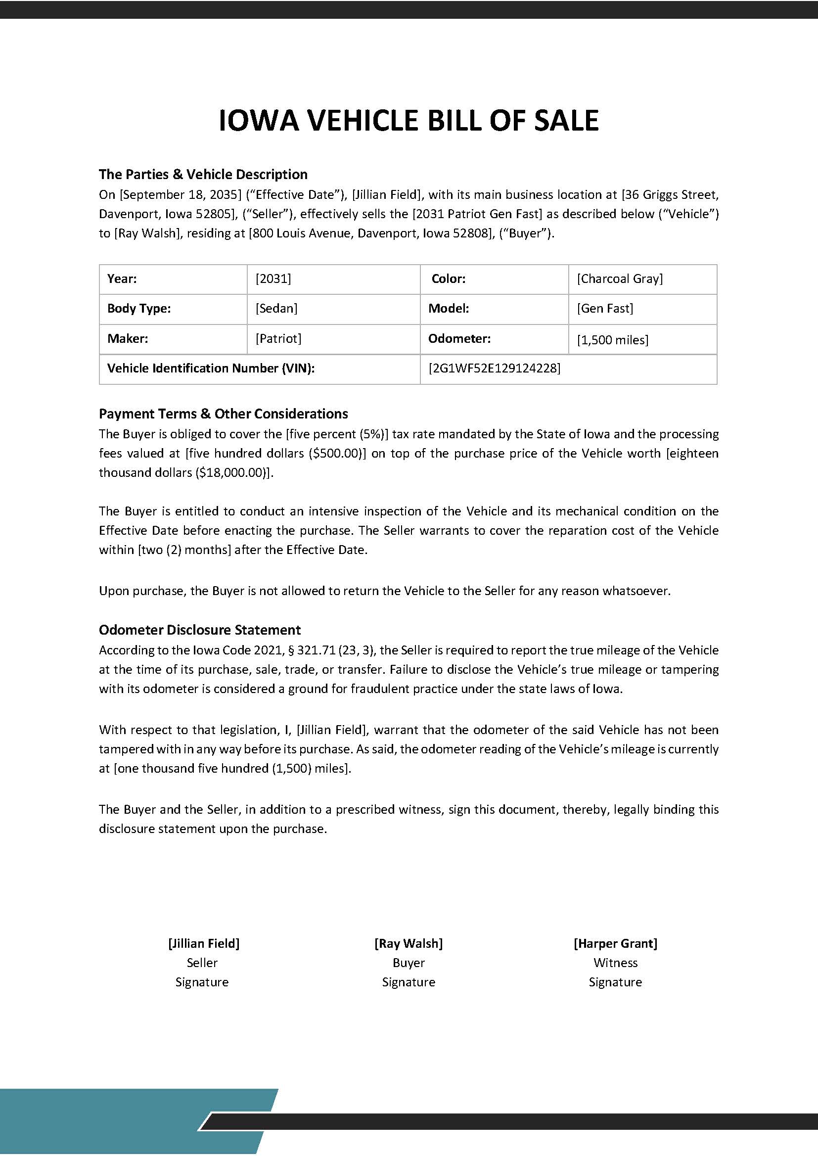 Iowa Vehicle Bill of Sale Template in PDF Word Google Docs Download