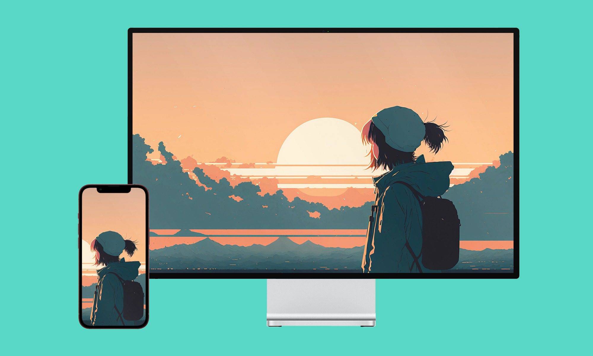 Apple Studio Display and iPhone Photoshop Mockup Template Mediamodifier