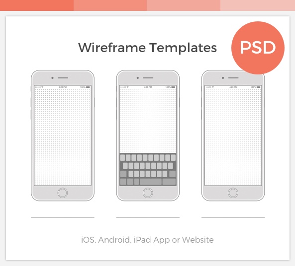 Download free Flat iPhone Wireframe Design Template (PSD) PSD file