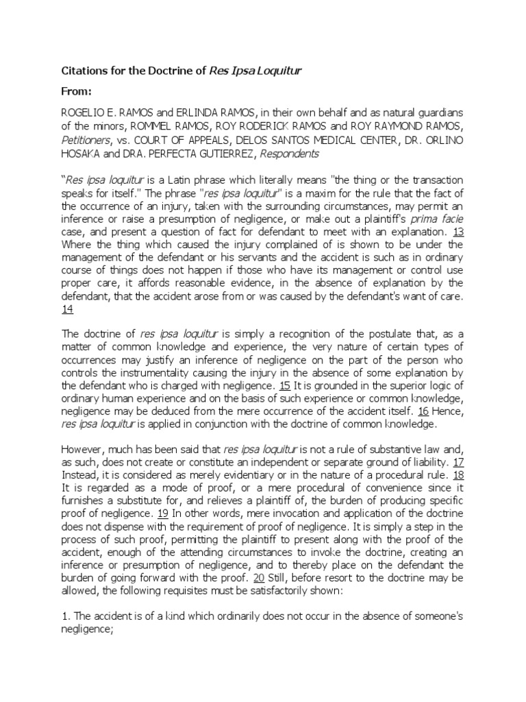 Citations For Res Ipsa Loquitur PDF