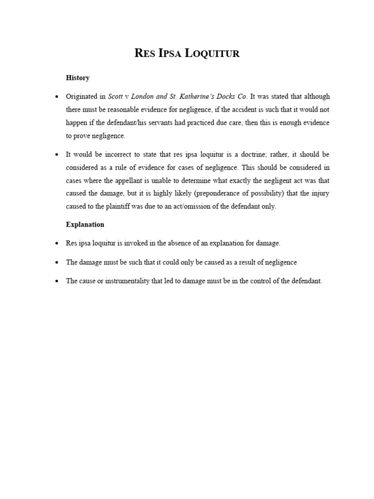 What Is Res Ipsa Loquitur PDF Negligence Justice