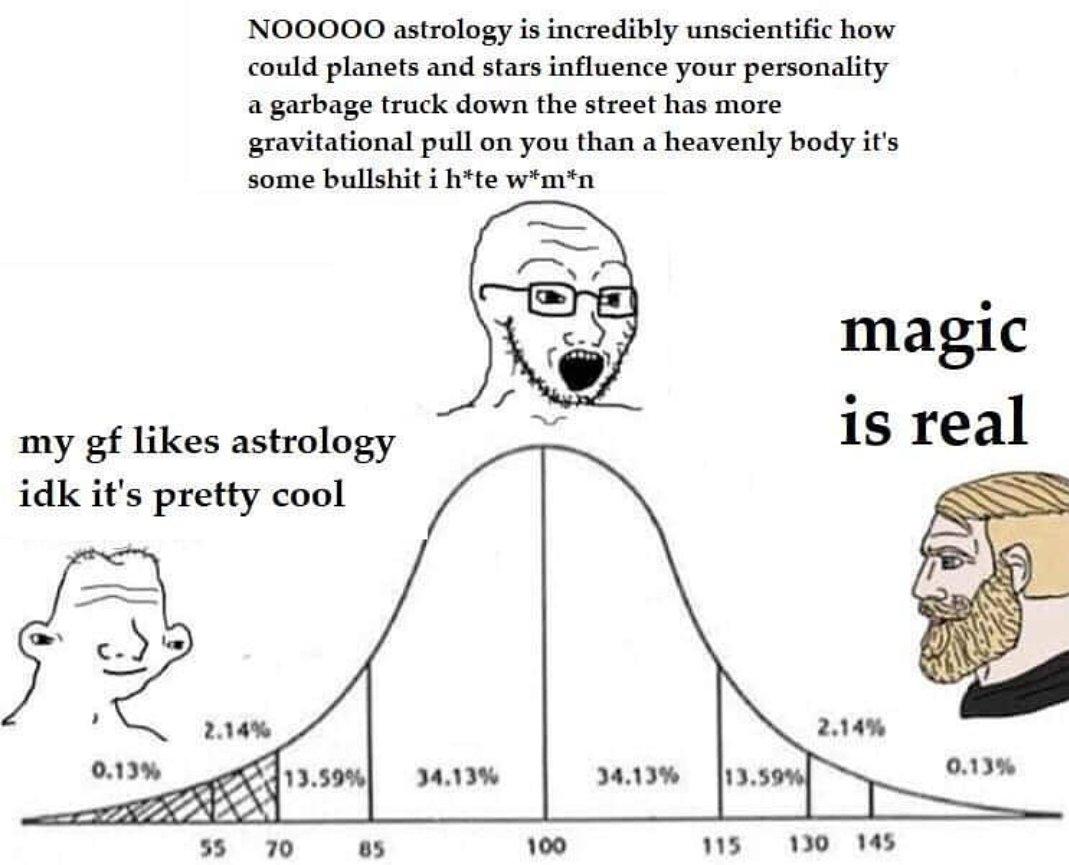 Astrology / Magic IQ Bell Curve / Midwit Know Your Meme