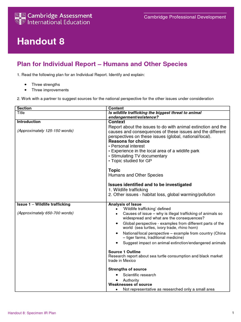 Handout 8 Specimen IR Plan v2 PDF Wildlife Endangered Species