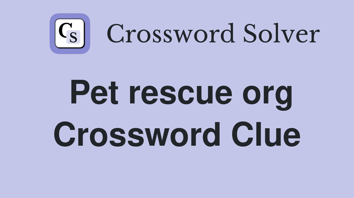 Pet rescue org Crossword Clue Answers Crossword Solver