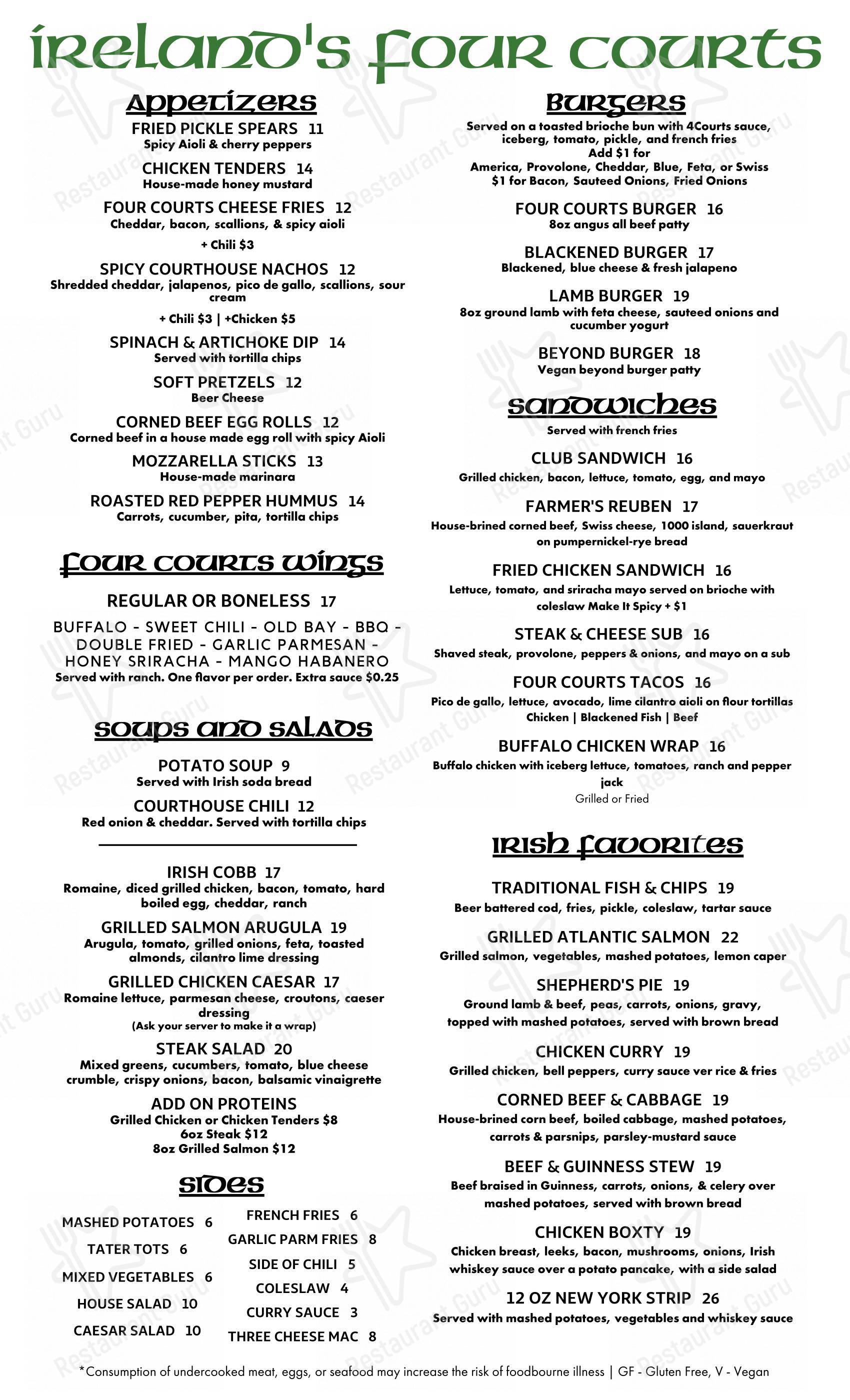 Menu at Ireland #39 s Four Courts pub bar Arlington