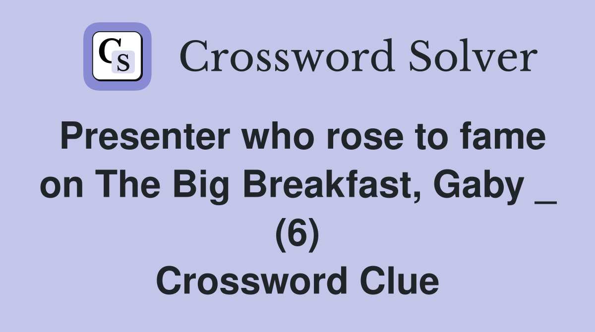 Presenter who rose to fame on The Big Breakfast Gaby (6) Crossword