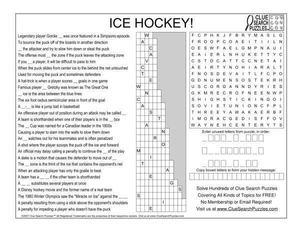 Ice Hockey Crossword Puzzle: Learn Hockey Terms
