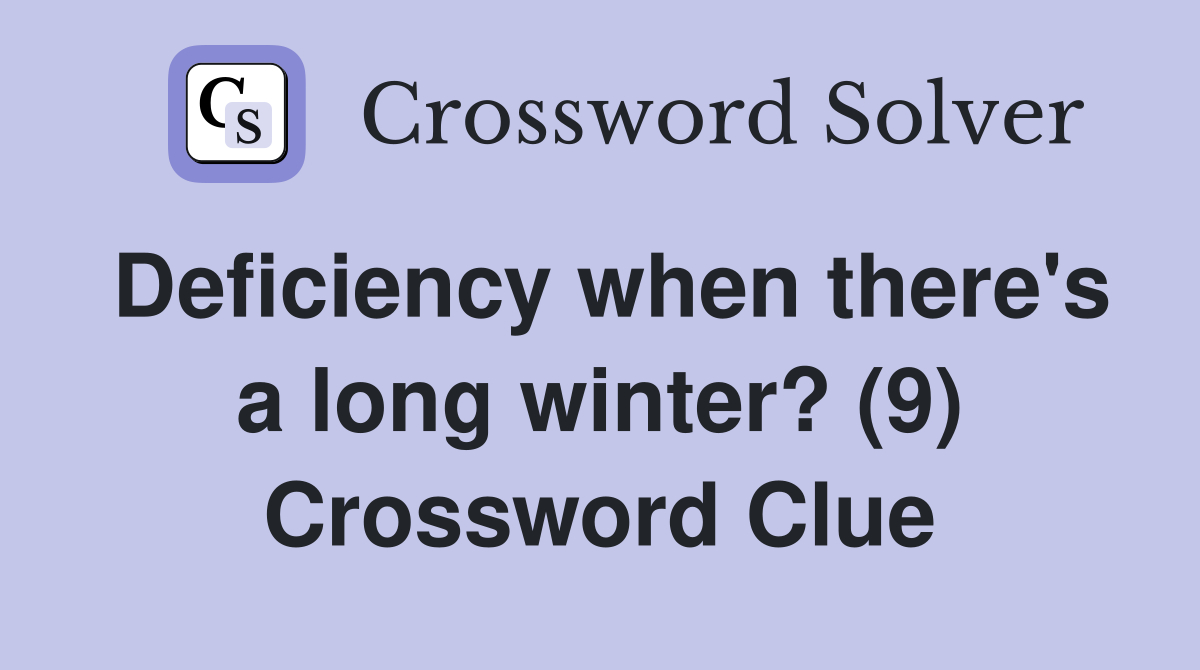 Deficiency when there #39 s a long winter? (9) Crossword Clue Answers