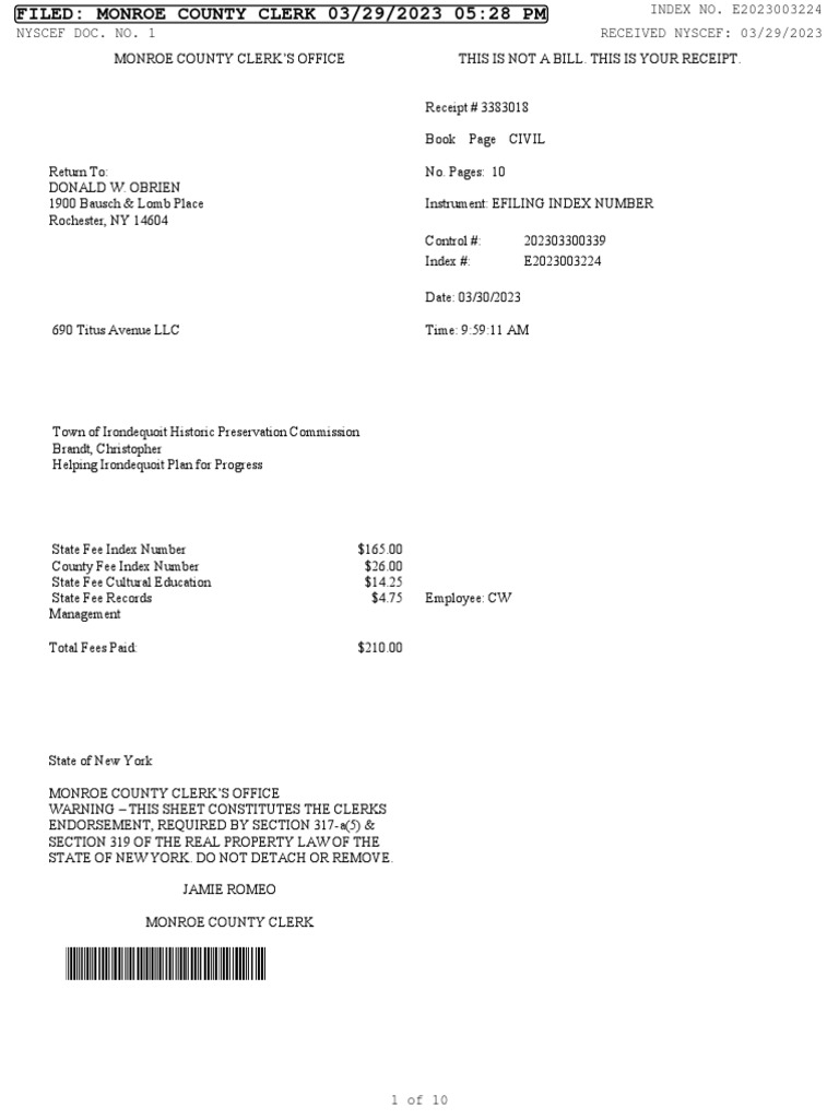 Irondequoit Historic Landmark Dispute PDF Rochester Justice