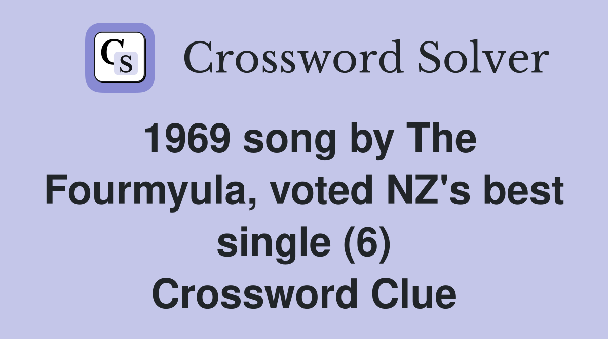 1969 song by The Fourmyula voted NZ #39 s best single (6) Crossword Clue