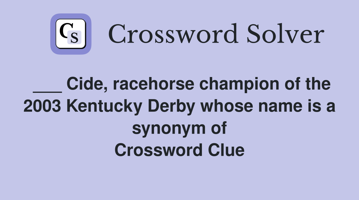 Cide racehorse champion of the 2003 Kentucky Derby whose name is a