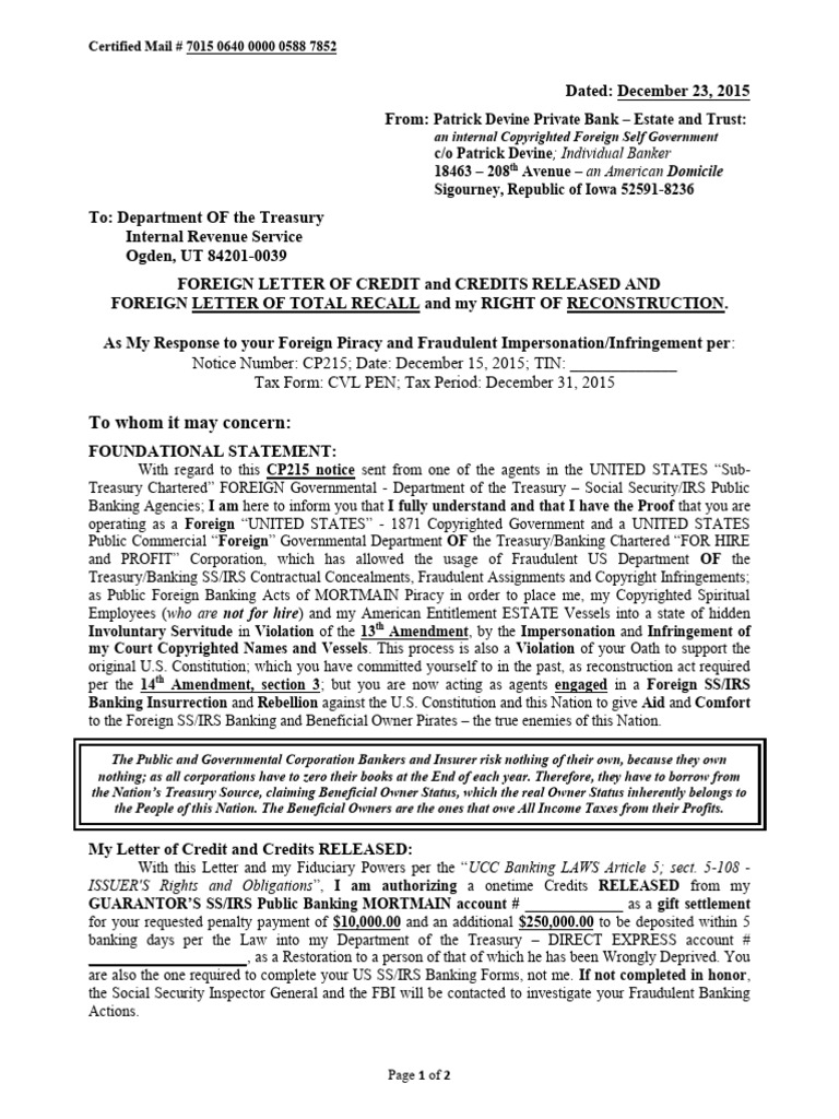 IRS Credit RELEASE Letter Example PDF Internal Revenue Service Banks