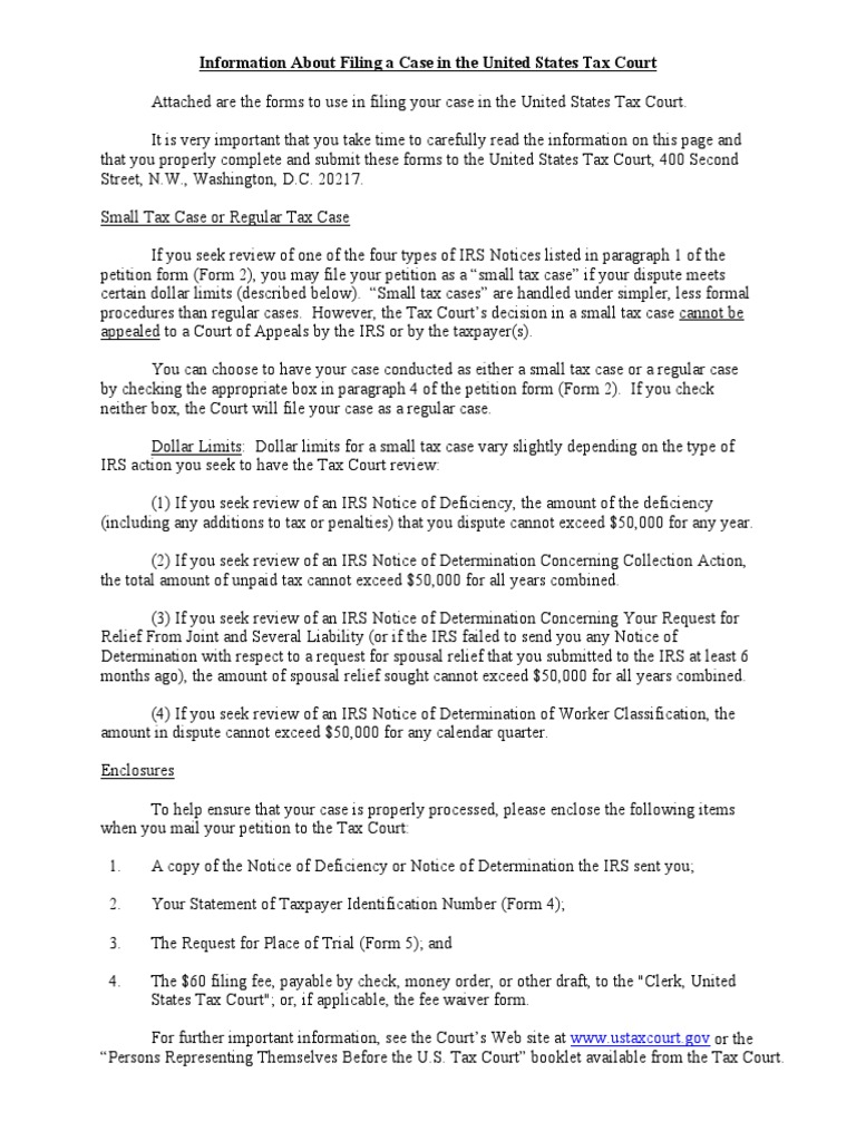 U S Tax Court Petition Kit PDF PDF United States Tax Court