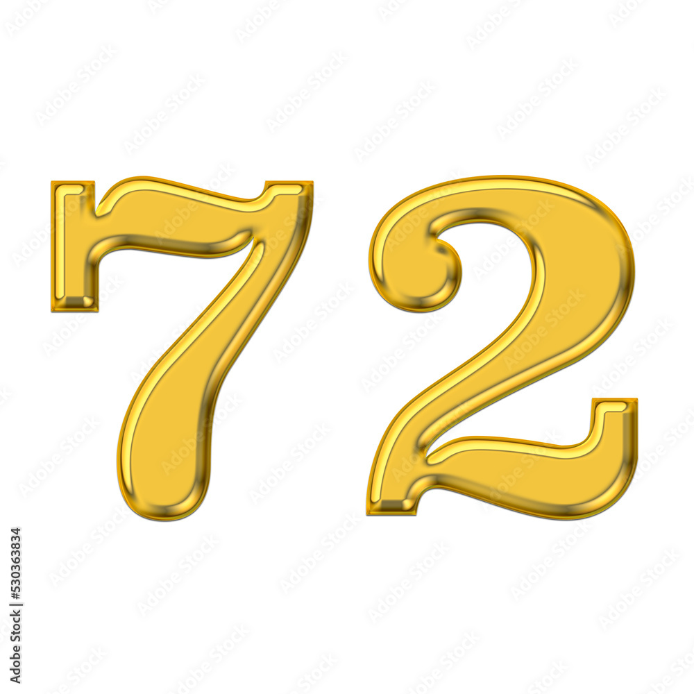 Gold number 72 Seventy two shiny 3d number made of gold 3d illustration
