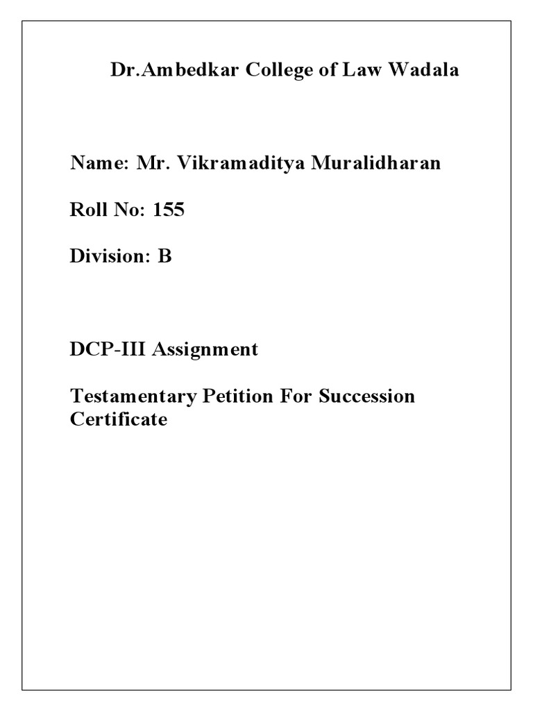 Testamentary Petition For Succession Certificate Project PDF Will