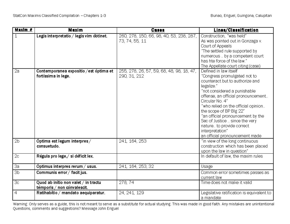 Maxims Classified Compilation Warning: Only serves as a guide this