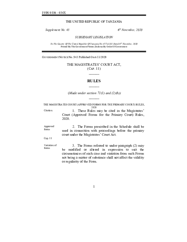 (PDF) Magistrates Court (Approved Forms for the Primary Court)