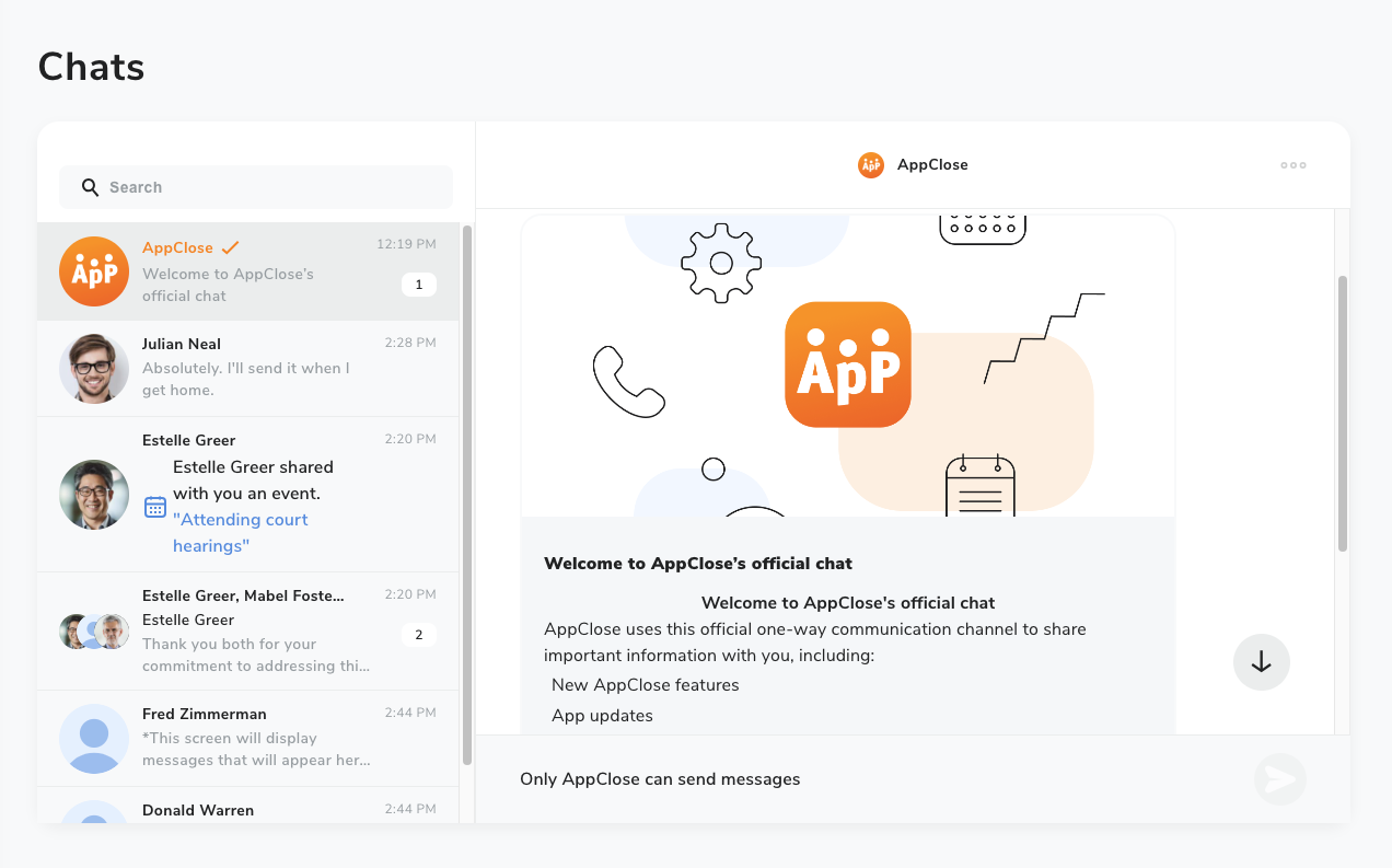 About the AppClose s official chat AppClose