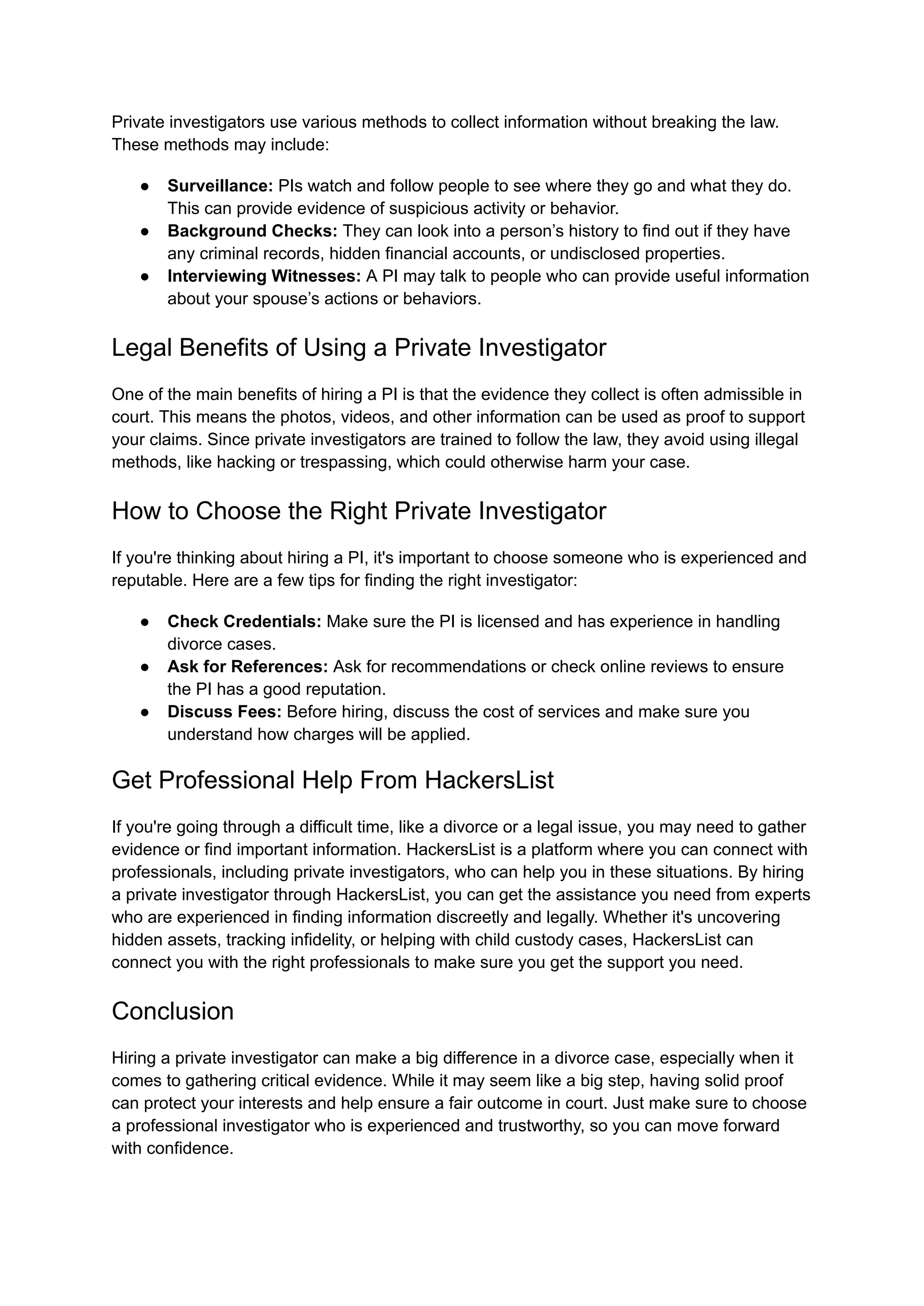 Hire A Private Investigator To Collect Evidence For Divorce Case pdf