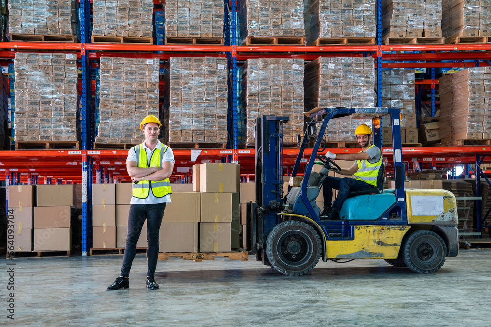 team of male staff driving forklifts to deliver goods and Froman
