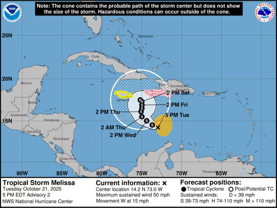 National Hurricane Center tracking Tropical Storm Melissa 2 tropical