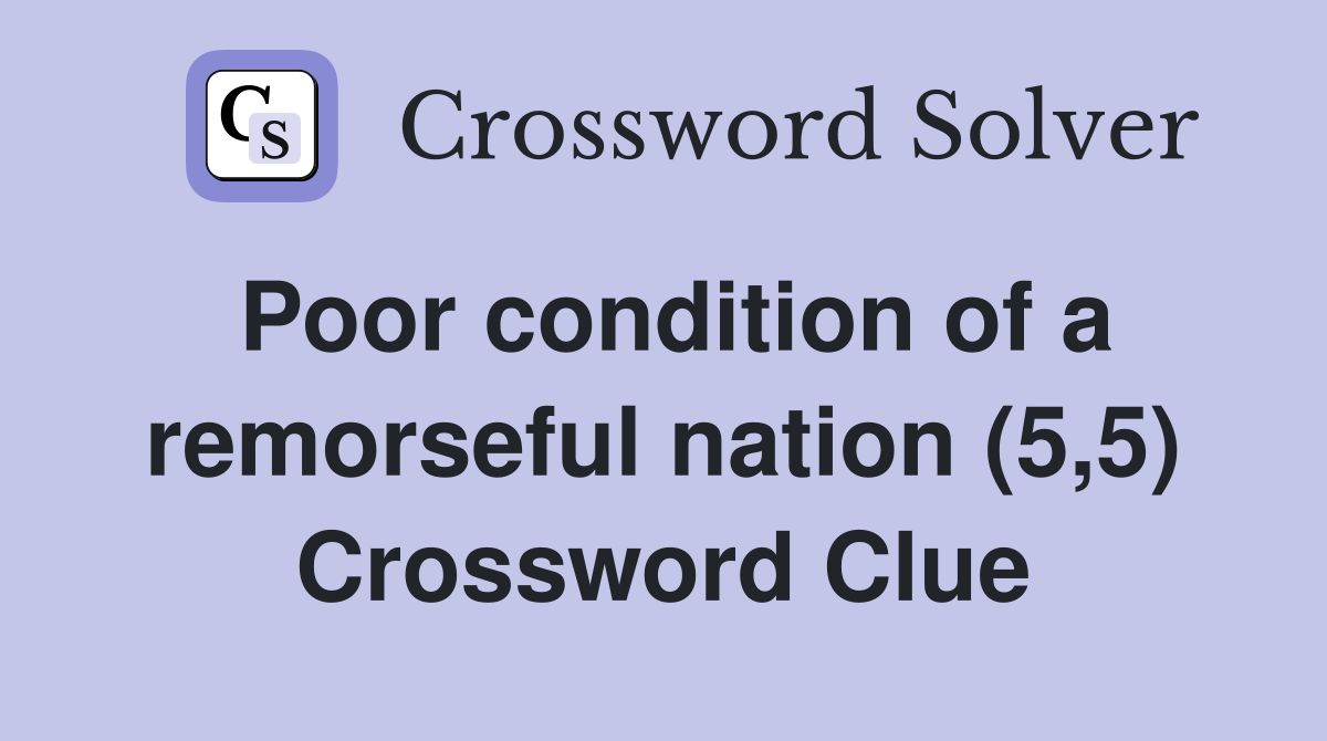 Poor condition of a remorseful nation (5 5) Crossword Clue Answers