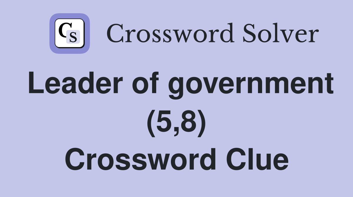 Leader of government (5 8) Crossword Clue Answers Crossword Solver