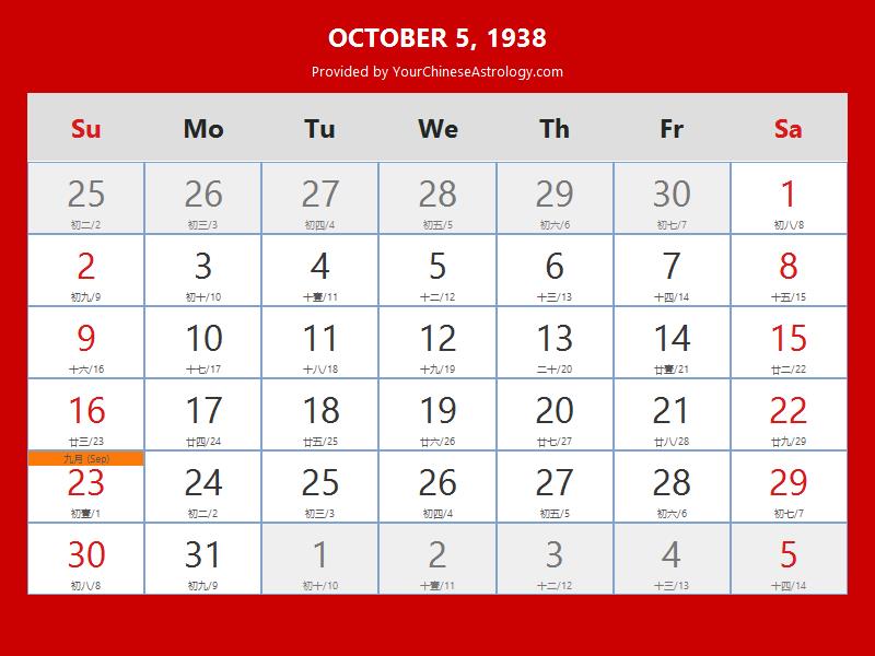 Chinese Calendar Oct 05 1938: Auspicious Things to Do and Hours Bazi