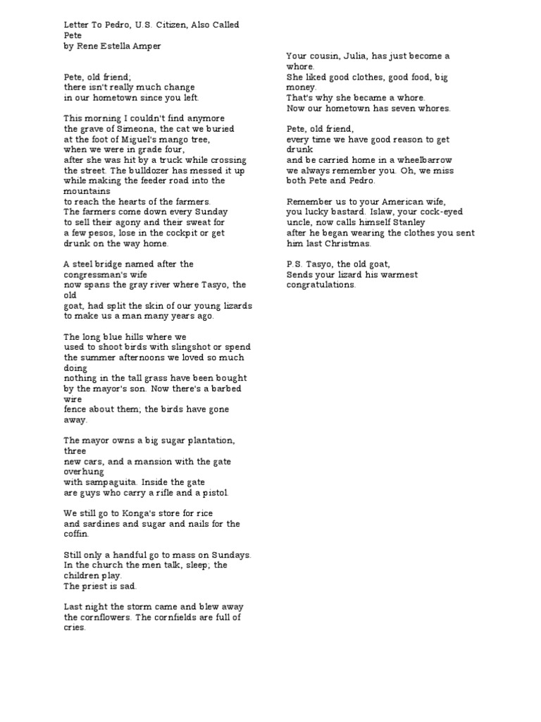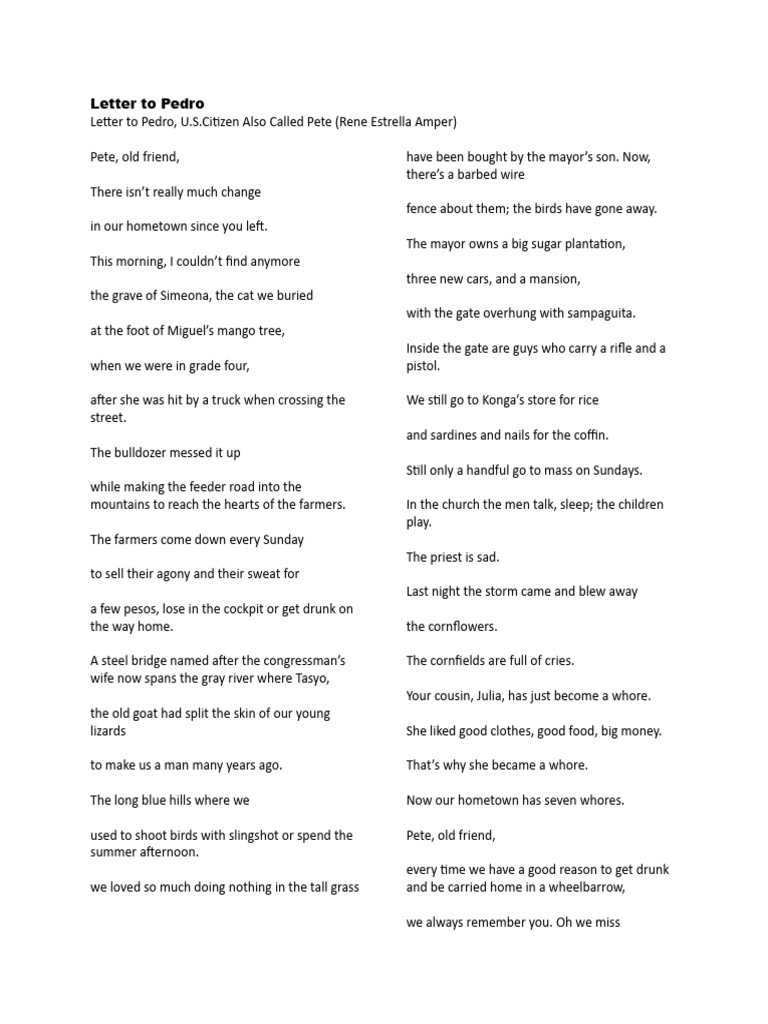 Letter To Pedro PDF Poetry