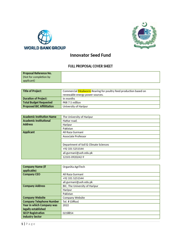 ISF Concept Note Template PDF Startup Company Small Business
