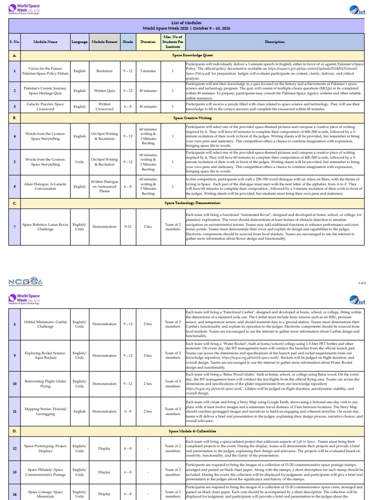 WSW 2025 List of Modules With Descriptions PDF Weightlessness