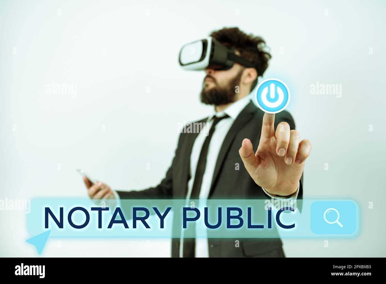 Sign displaying Notary Public Concept meaning Legality Documentation