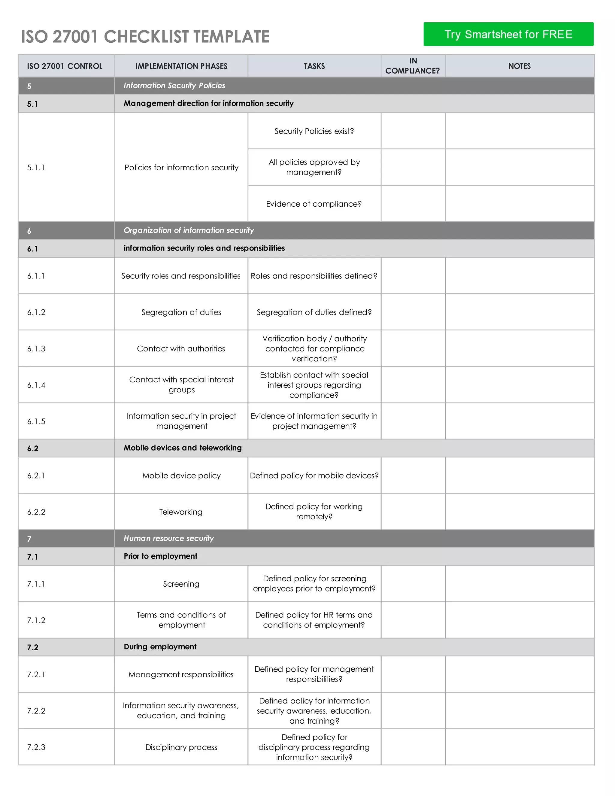 ISO 27001 CHECKLIST TEMPLATE Smartsheet Inc / iso 27001 checklist