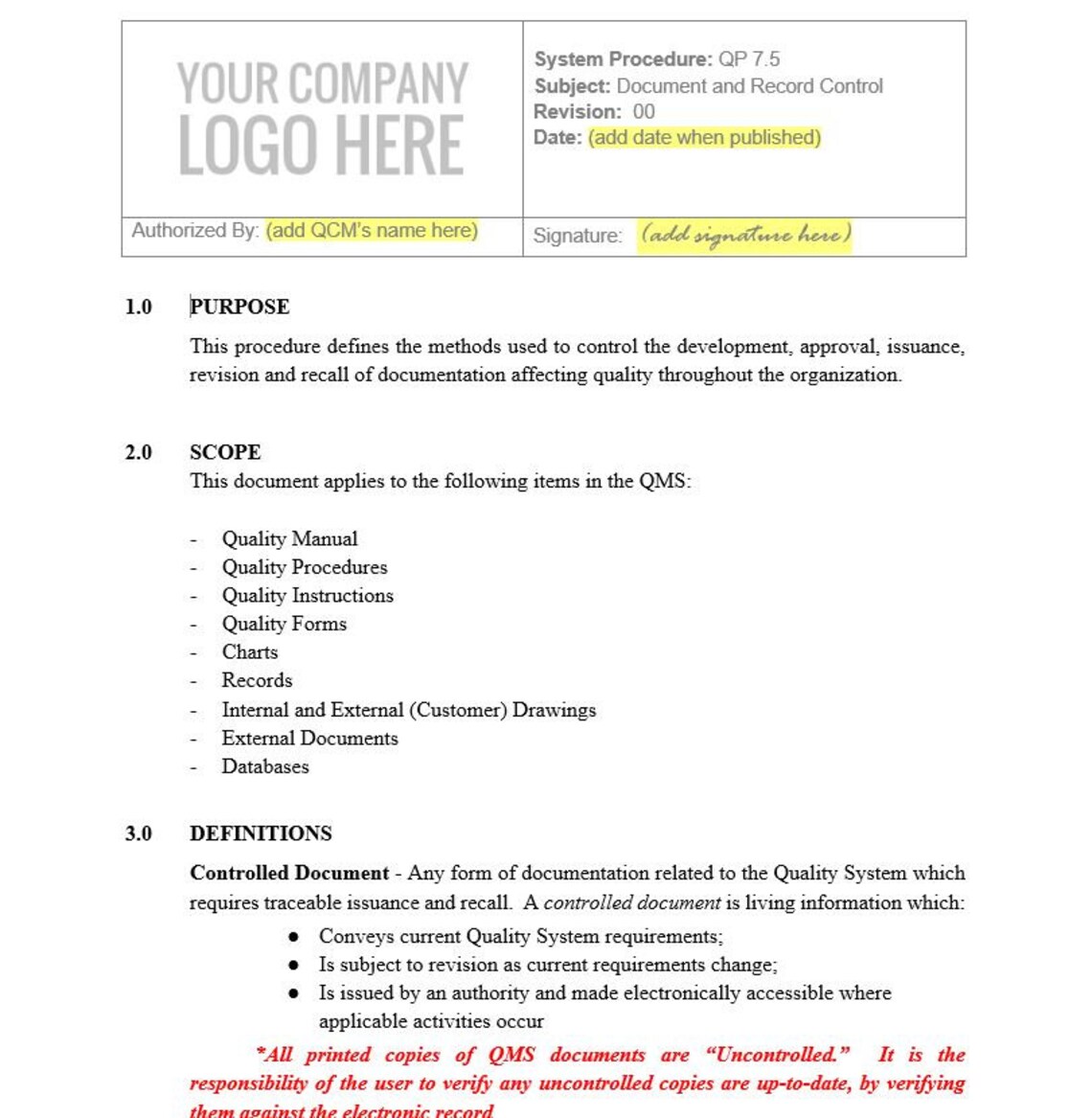 Iso Document Control Template