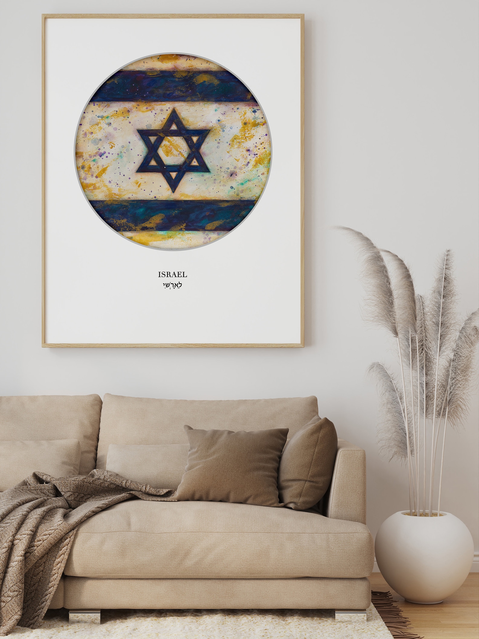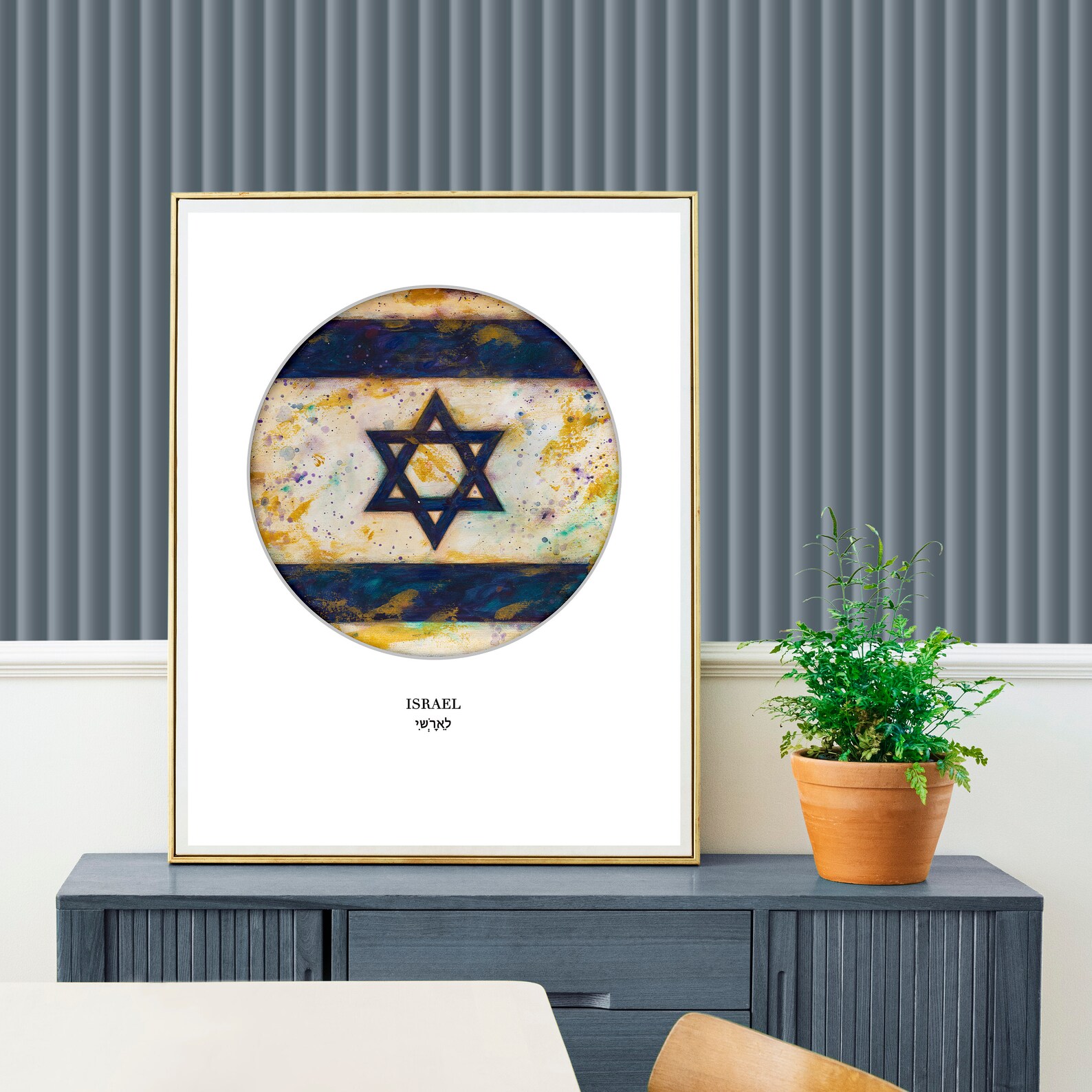 Israel Flag Art Print: Vintage Jewish Wall Decor Star of David