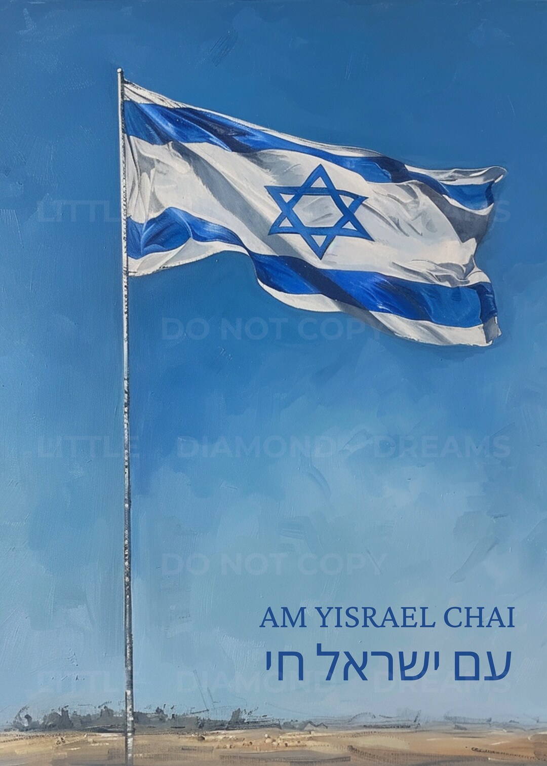Printable Israel Flag Painting Wall Art With the Words Am Yisrael Chai