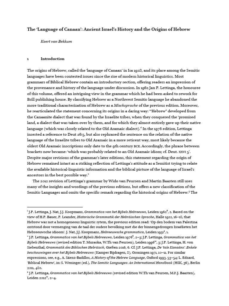 The Language of Canaan Ancient Israels H Koert Van Bekkum PDF
