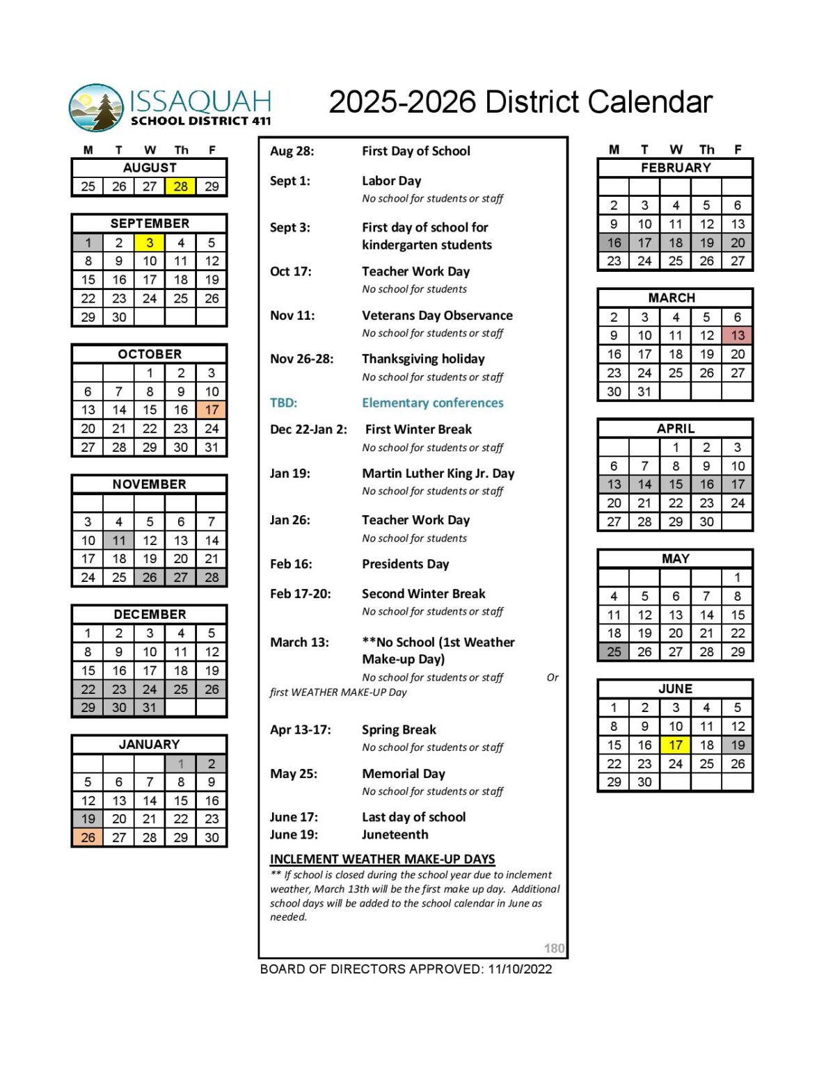 Issaquah School District Calendar 2025 Holiday Dates
