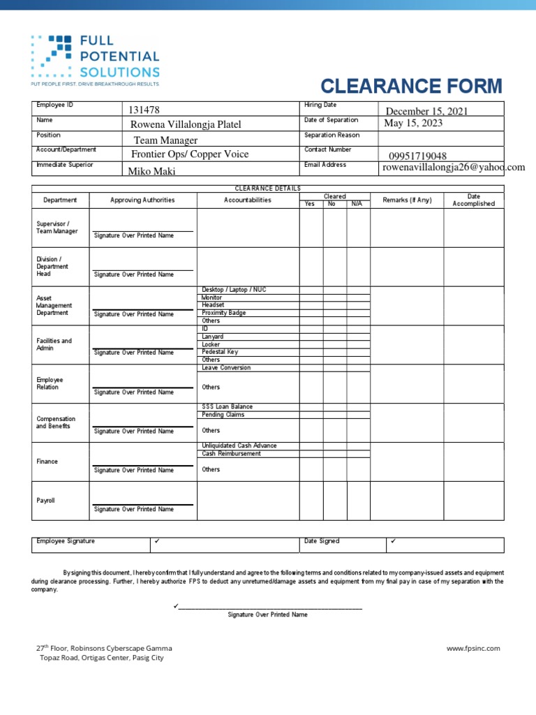 PH Clearance Form v2 Download Free PDF Money Financial Services