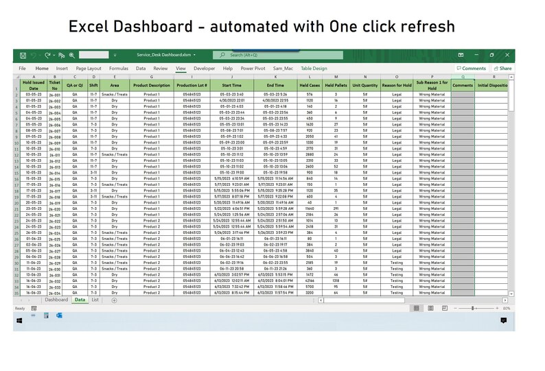 Excel Dashboard: Incident Management Service Desk Pallet Tracker Etsy