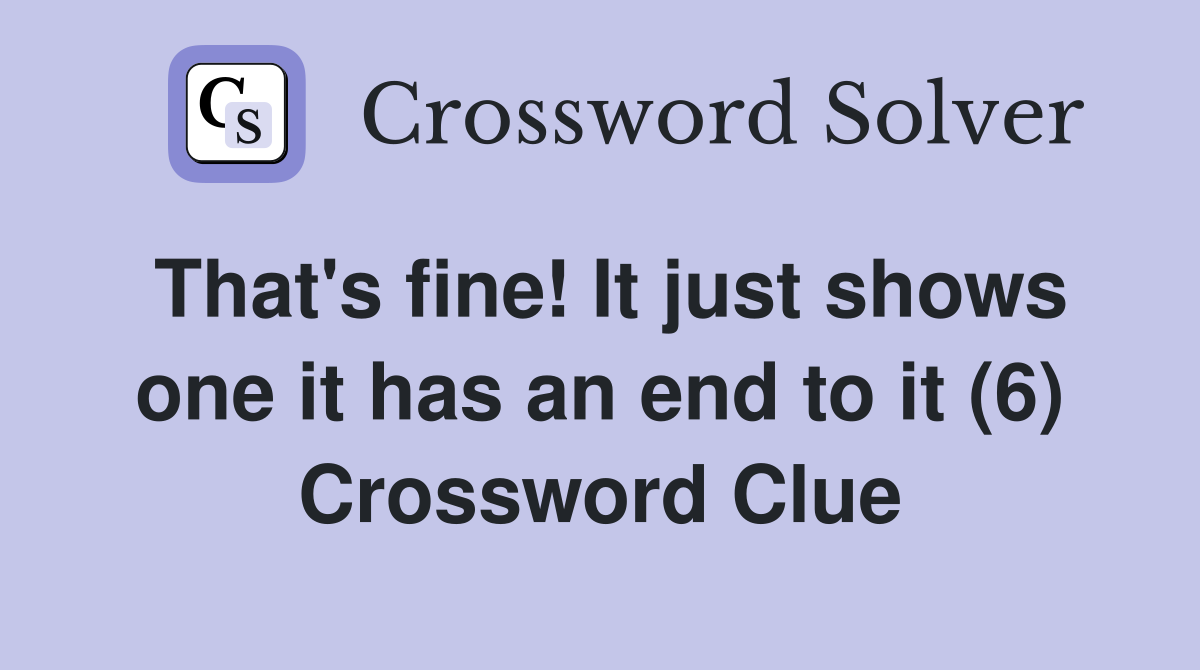 That #39 s fine It just shows one it has an end to it (6) Crossword Clue