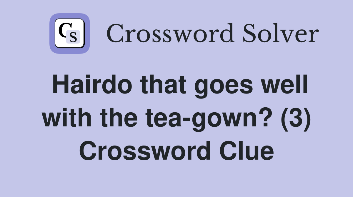Hairdo that goes well with the tea gown? (3) Crossword Clue Answers