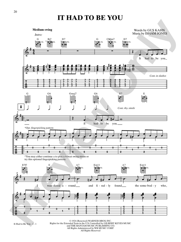 It Had To Be You: Guitar: Isham Jones Digital Sheet Music Download