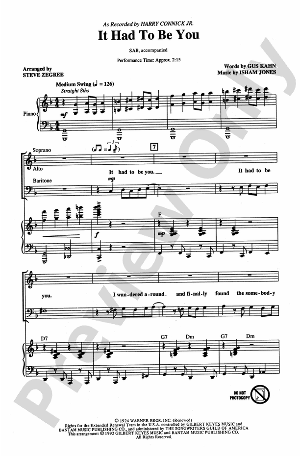 It Had to Be You: SAB Choral Octavo: Isham Jones Digital Sheet Music
