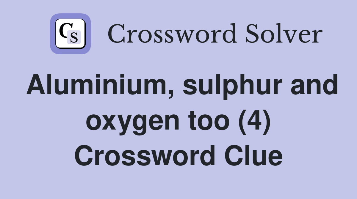 Aluminium sulphur and oxygen too (4) Crossword Clue Answers
